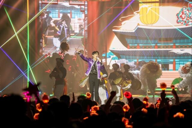 이어 그는 연주자의 깊고 묵직한 대금 선율에 맞춰 구수한 보이스로 ‘어매’를 열창했다. ‘쓰리랑’과 ‘진또배기’로 이어진 국악풍의 선곡들은 공연의 흥을 절정으로 끌어올렸다. 그는 새해 인사와 함께 다음 공연에서의 재회를 약속하며 관객들과 단체 사진을 촬영해 부산 공연에서의 소중한 추억을 남겼다.