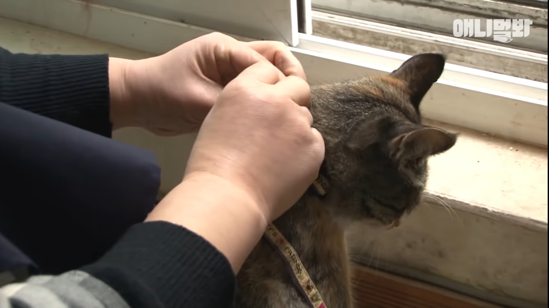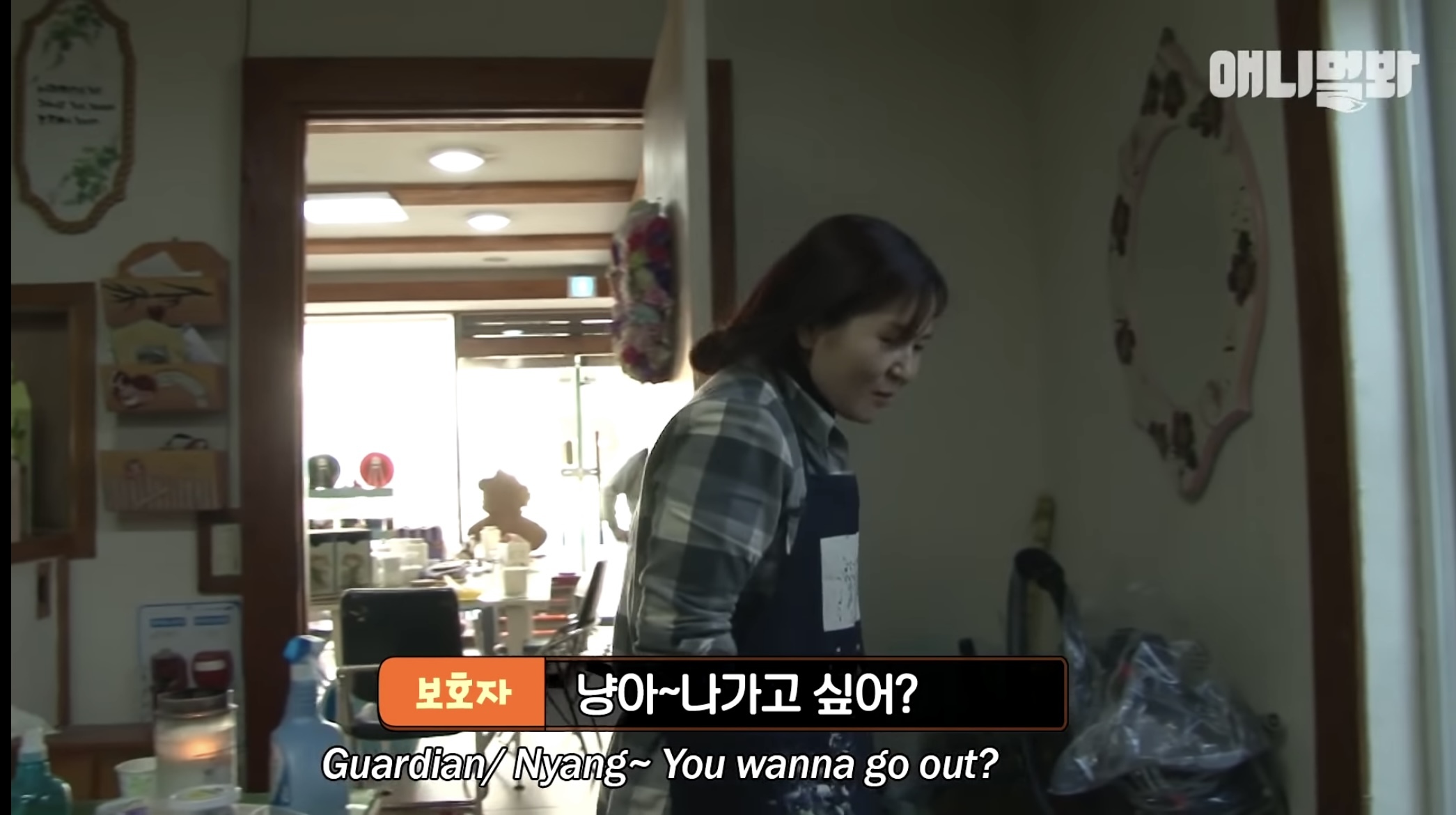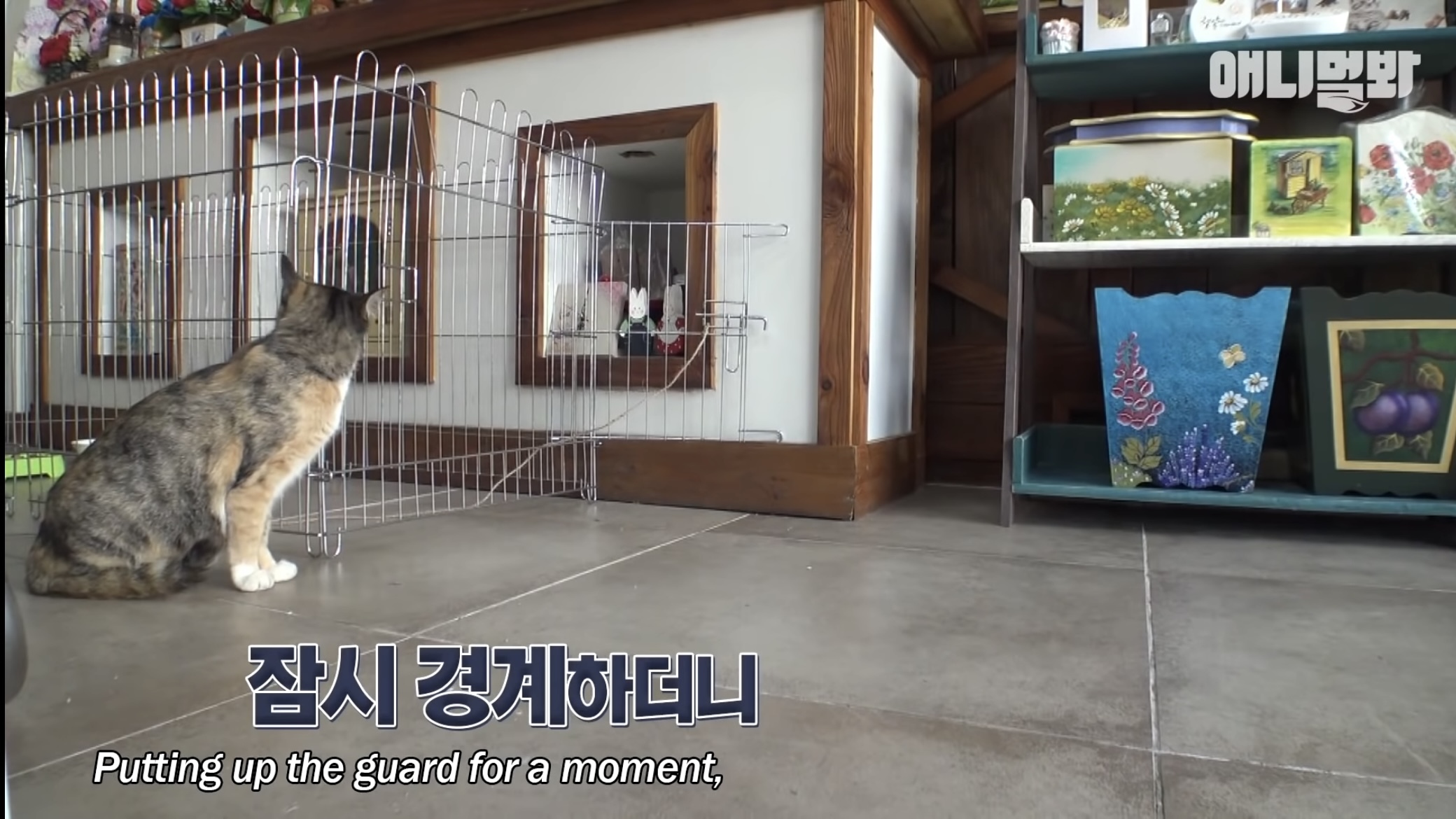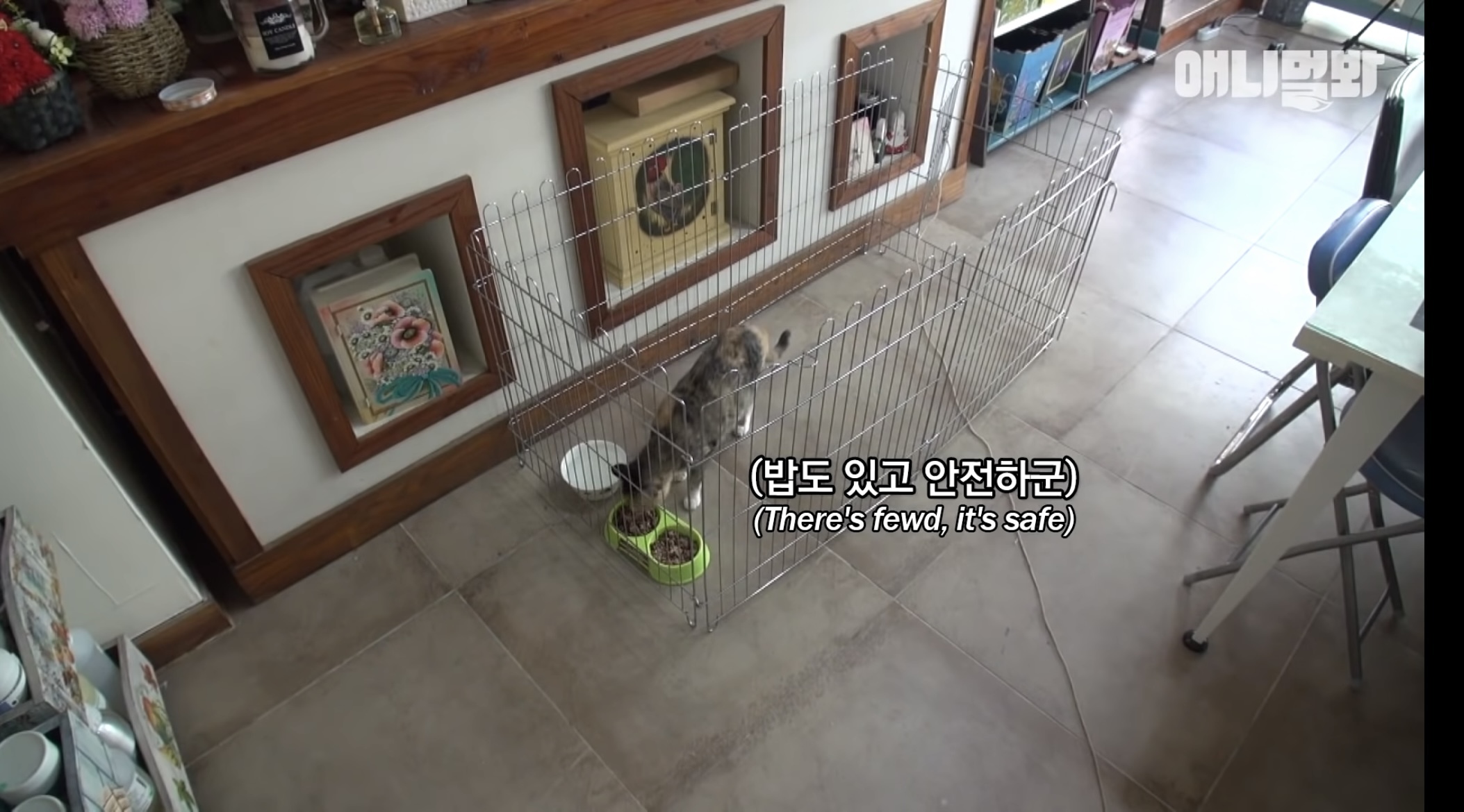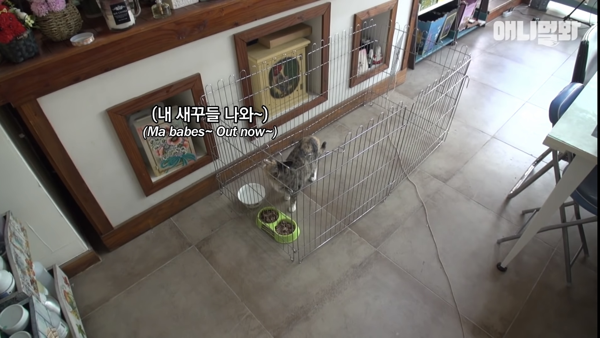 사람들 들어오면 또 야옹해서