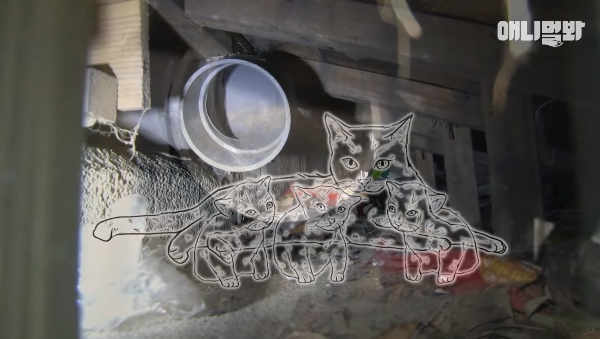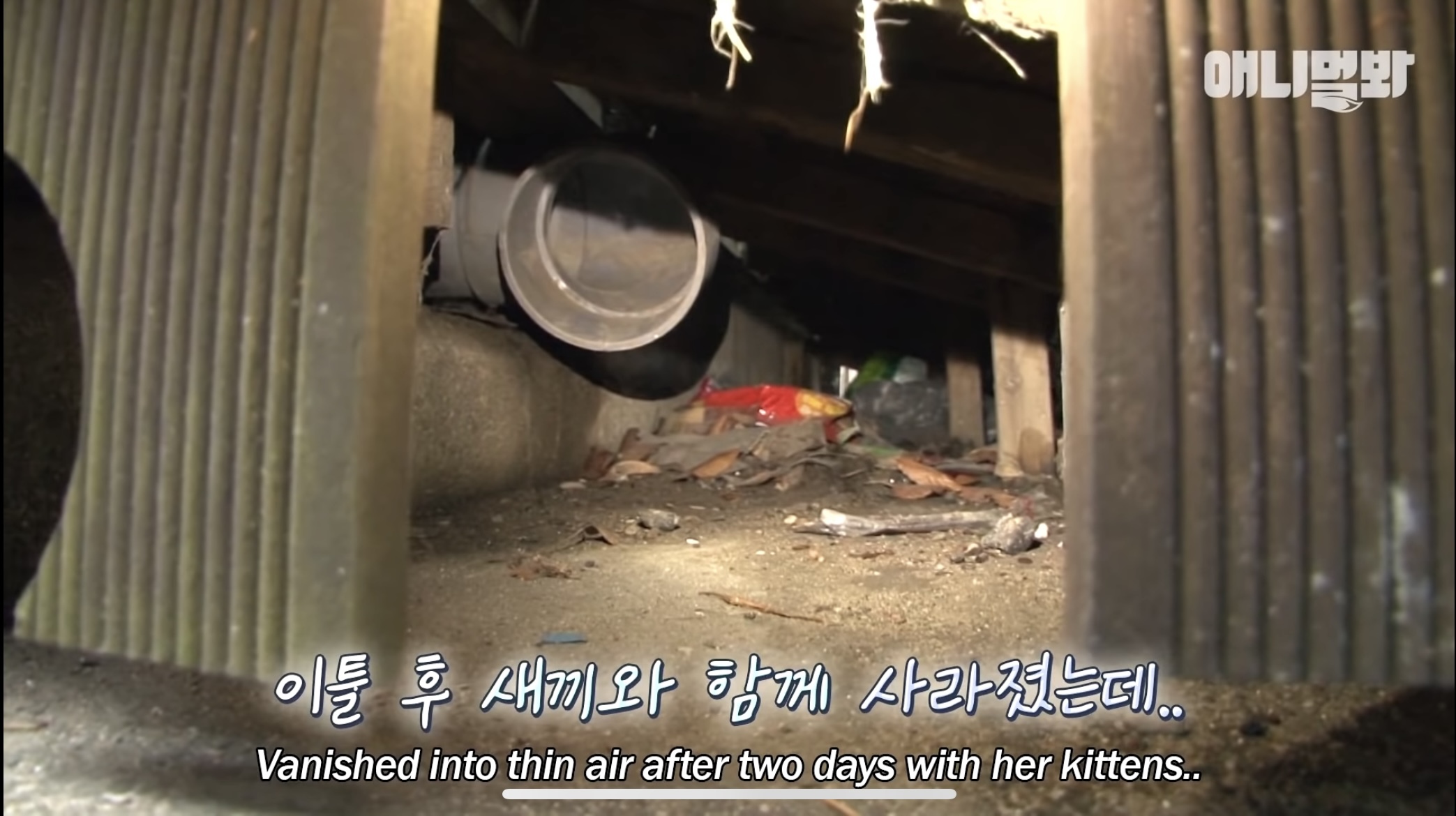 아기냥이들이 들어간 곳은 무척 좁은 틈 사이