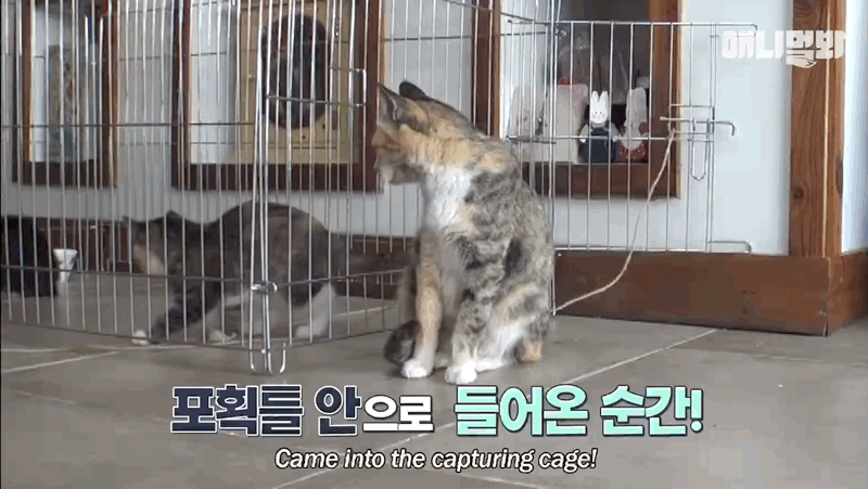 새끼들 다 들어가서 이제 포획틀 문 닫으려고