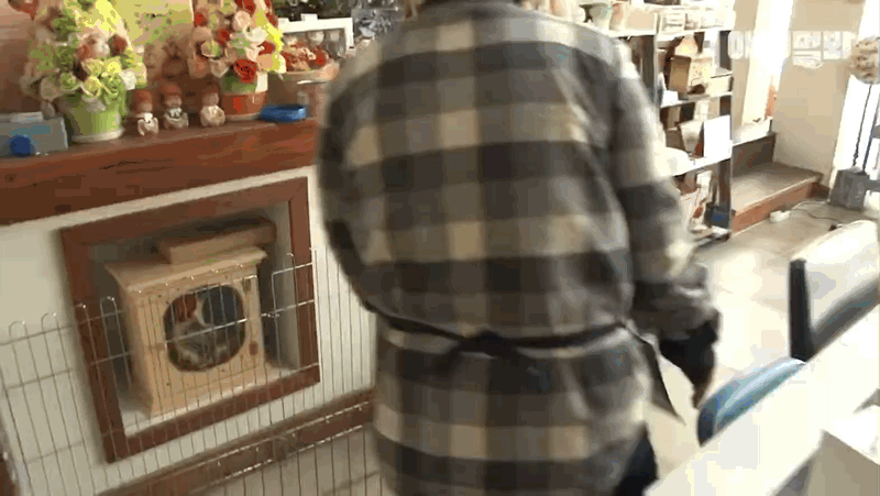황당한 사장님은 곧바로 나와서 냥이에게 묻지만