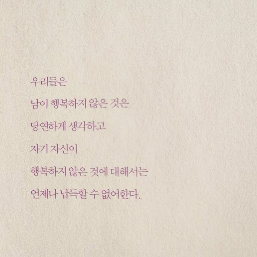 “내가 결혼을 선택한 것에 대해서 제발, 부탁이니, 누구도 비난하지 말기를 바란다. 여자 나이 스물다섯에 할 수 있는 결단이 꼭 결혼만 있는 것이 아니라는 것을 모를 사람이 어디 있겠는가. 그럼에도 나처럼 결혼을 선택하는 사람도 있는 것이다. … 나는 나인 것이다. 모든 인간이 똑같이 살 필요도 없지만, 그렇다고 똑같이 살지 않기 위해 억지로 발버둥 칠 필요도 없는 것이다. 이제 나는 더 이상 나를 학대하지 않기로 했다. 나는 특별하고 한적한 오솔길을 찾는 대신 많은 인생 선배들이 걸어간 길을 택하기로 했다. 삶의 비밀은 그 보편적인 길에 더 많이 묻혀 있을 것이라 확신하고 있으므로.”(217쪽)