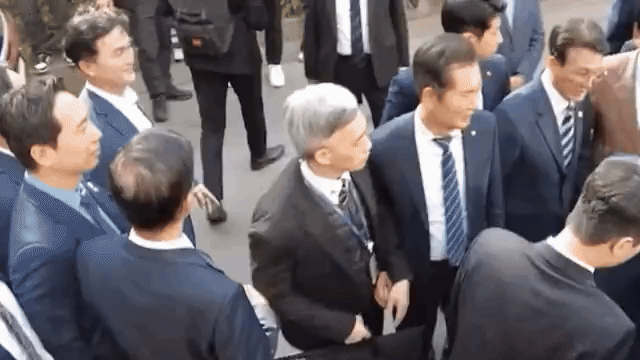 또 미는 장면인데 이재명 대통령에게(당시 당대표 시기) 정청래는 손 흔들고 김민석은 인사하는 중