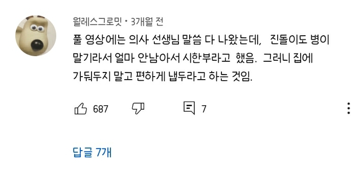 수의사: 오히려 무작정 나이가 들었다고 해서 좁은 공간안에 보살피려고만 하다보면 오히려 심리적인 불안감이 더 커질것 같습니다
