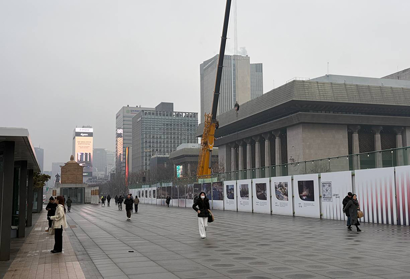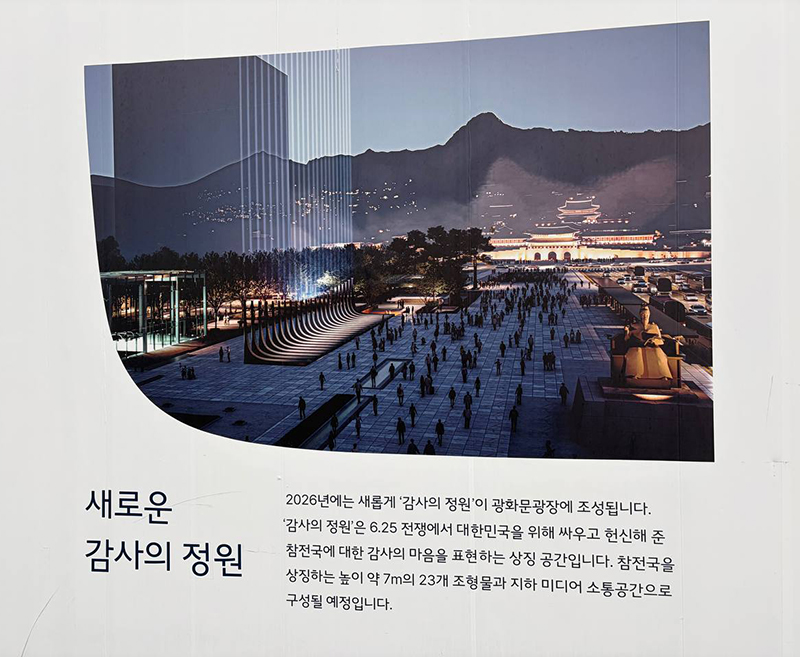 지금 광화문광장에 가보면 가림막 뒤로 공사가 한창이다. 위치는 광화문과 세종대왕상 사이, 정확히는 세종대왕 우측 뒤통수 부분이다. 지나가는 시민들은 늘 그렇듯 시설이 새로 들어서나 싶을 것이다. 그 공사는 오세훈표 광화문 알 박기 조형물 ‘감사의 정원’ 조성 공사다. 4월까지 완공하겠다는 ‘속도전’이다.