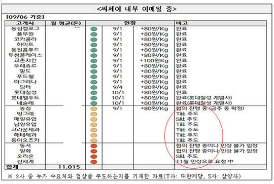 각 수요처별로 점유율이 가장 높은 제당사가 협상을 주도하고 협상 경과를 수시로 공유했다. 예컨대, A 음료회사는 CJ가, B 과자회사는 삼양사가, C 음료회사는 대한제당이 주도해 협상하는 식이다.