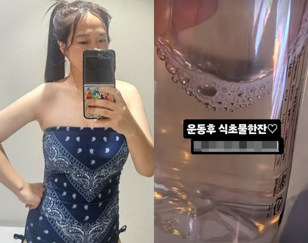 13일 홍현희는 개인 계정에 "운동 후 식초물 한 잔"이라는 글과 함께 한 장의 사진을 게재했다.