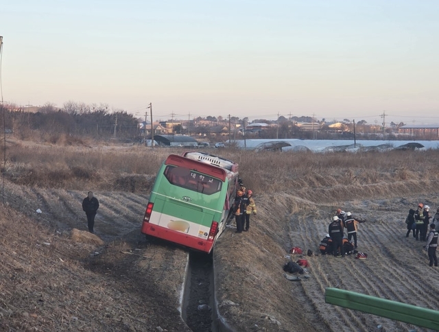 19일 경찰에 따르면 이날 오전 6시 57분쯤 익산시 여산면 한 논길에서 통근버스가 보호 난간을 들이받은 뒤 농수로로 추락하며 전도된 것으로 파악됐다.