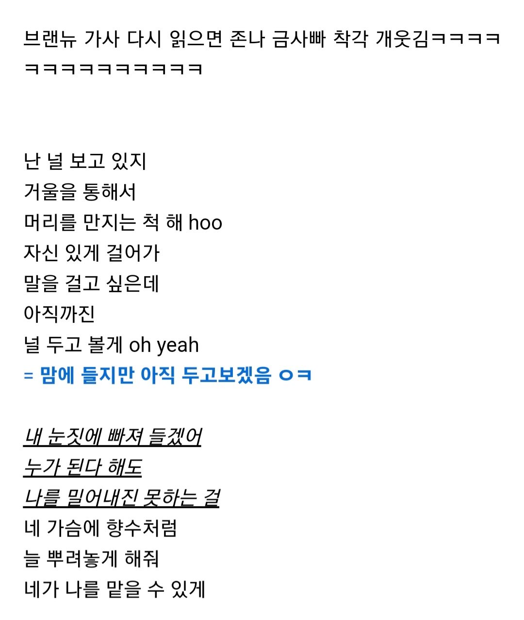 신화 Brand new 가사보고 낄낄대는 달글