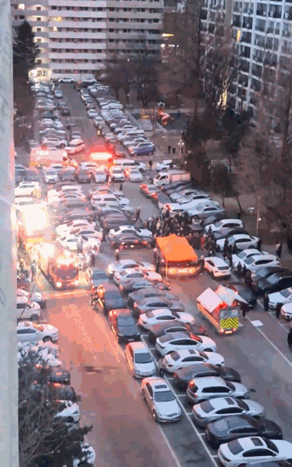 JTBC가 단독으로 확보한 영상에 따르면, 화재 당시 소방차 여러 대와 구급차들은 이중주차된 수많은 차들 때문에 진입에 어려움을 겪었습니다.