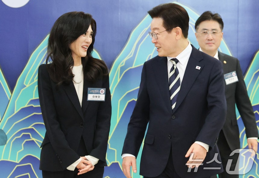 (서울=뉴스1) 이재명 기자 = 이재명 대통령이 25일 청와대에서 열린 확대국가관광전략회의에 앞서 이부진 한국방문의해위원장과 대화하고 있다. 2026.2.25/뉴스1