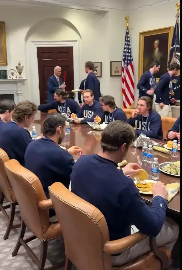 정장을 차려입고 메달을 목에 건 선수들이 백악관에서 패스트푸드를 즐기는 장면은 강한 인상을 남겼다. 배경에는 애국가가 울려 퍼졌고, 트럼프 대통령 특유의 '맥도날드 만찬'은 또 한 번 재현됐다. 그는 2019년 대학 풋볼 챔피언 팀을 초청했을 당시에도 맥도날드를 제공한 바 있어, 이번 역시 그의 스타일을 상징적으로 보여주는 장면이라는 평가가 나온다.