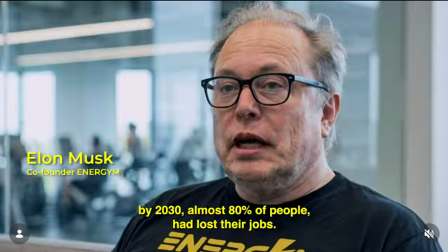 광고는 일자리의 80%가 AI와 로봇으로 대체되고, 주식시장 붕괴 이후 경제가 침체에 빠진 2036년을 배경으로 설정했다. 영상에는 AI로 제작된 나이 든 모습의 일론 머스크 테슬라 최고경영자(CEO)와 샘 올트먼 오픈AI 대표, 아마존의 제프 베이조스가 등장해 인터뷰를 한다.