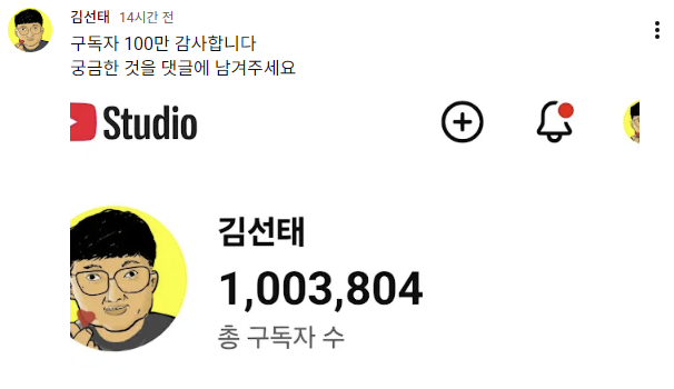 5일 오후 기준 김선태의 개인 유튜브 채널 구독자 수는 100만 명을 넘어섰다. 지난 3일 공무원 퇴사 소식과 함께 첫 영상을 공개하며 활동을 시작한 지 약 48시간 만에 거둔 성과다. 단 한 편의 영상만으로 유튜브 ‘골드 버튼’ 기준인 구독자 100만 명을 달성했다.