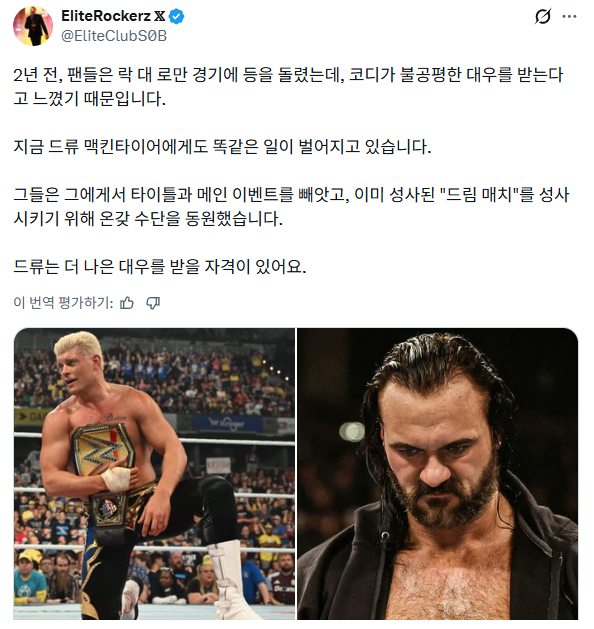 코디 로즈 vs 랜디 오턴 대진을 만들기 위해