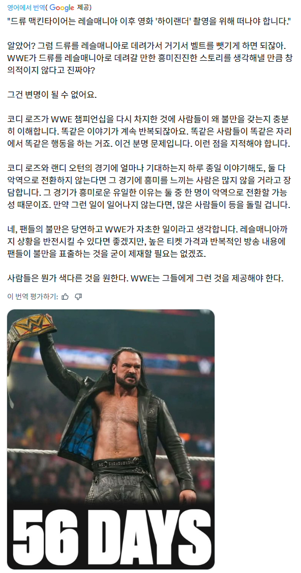 이슈 오늘 WWE 팬들 반발 최고조로 나오고 있는 엔딩.gif