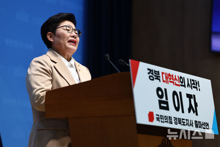 [서울=뉴시스] 김명년 기자 = 임이자 국민의힘 의원이 8일 오후 서울 여의도 국회 소통관에서 기자회견을 열고 경북도지사 출마선언을 하고 있다.