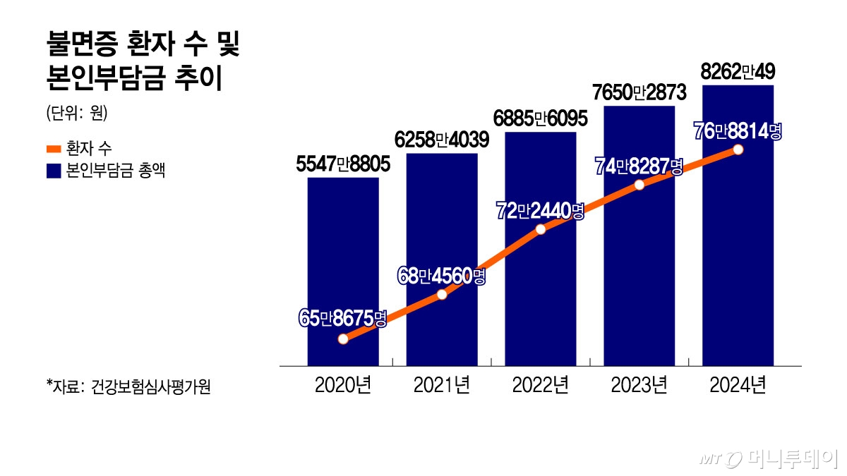 불면증 환자 수 및 개인부담금 추이/그래픽=윤선정
