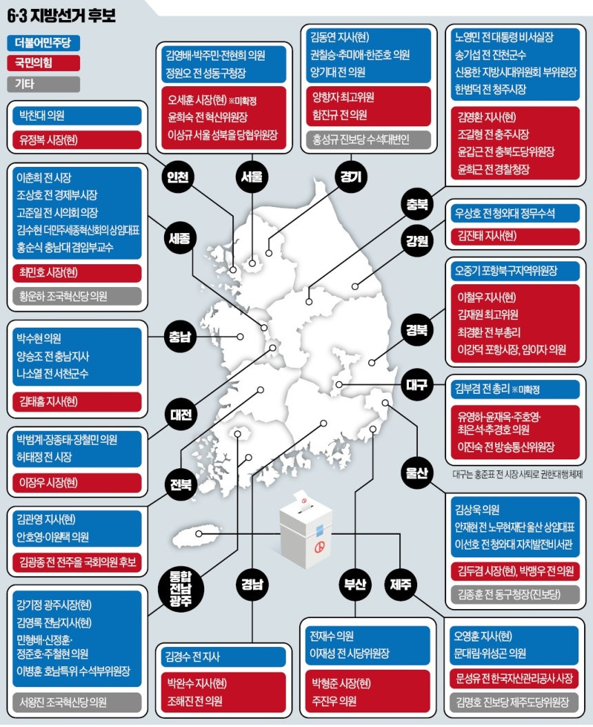 D-82…6·3지방선거 광역단체장 대진표 '윤곽'