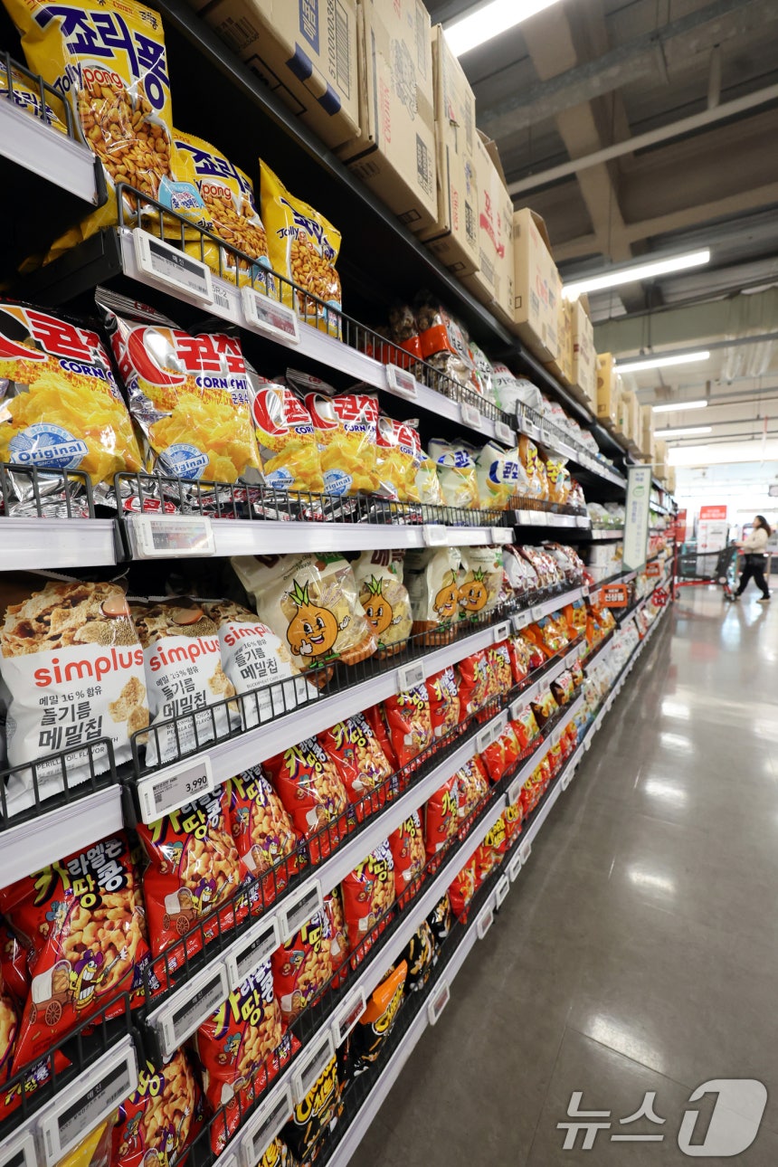 (서울=뉴스1) 황기선 기자 = 16일 서울시내 한 대형마트에 과자가 진열돼 있다.