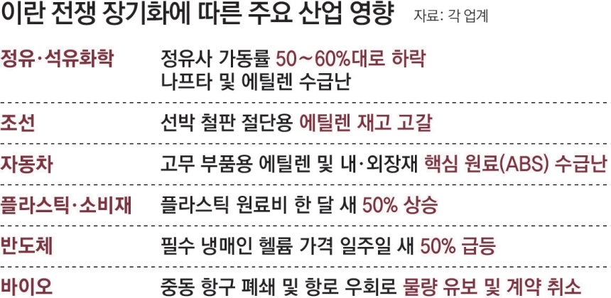● 전 산업이 이란 전쟁 영향권으로