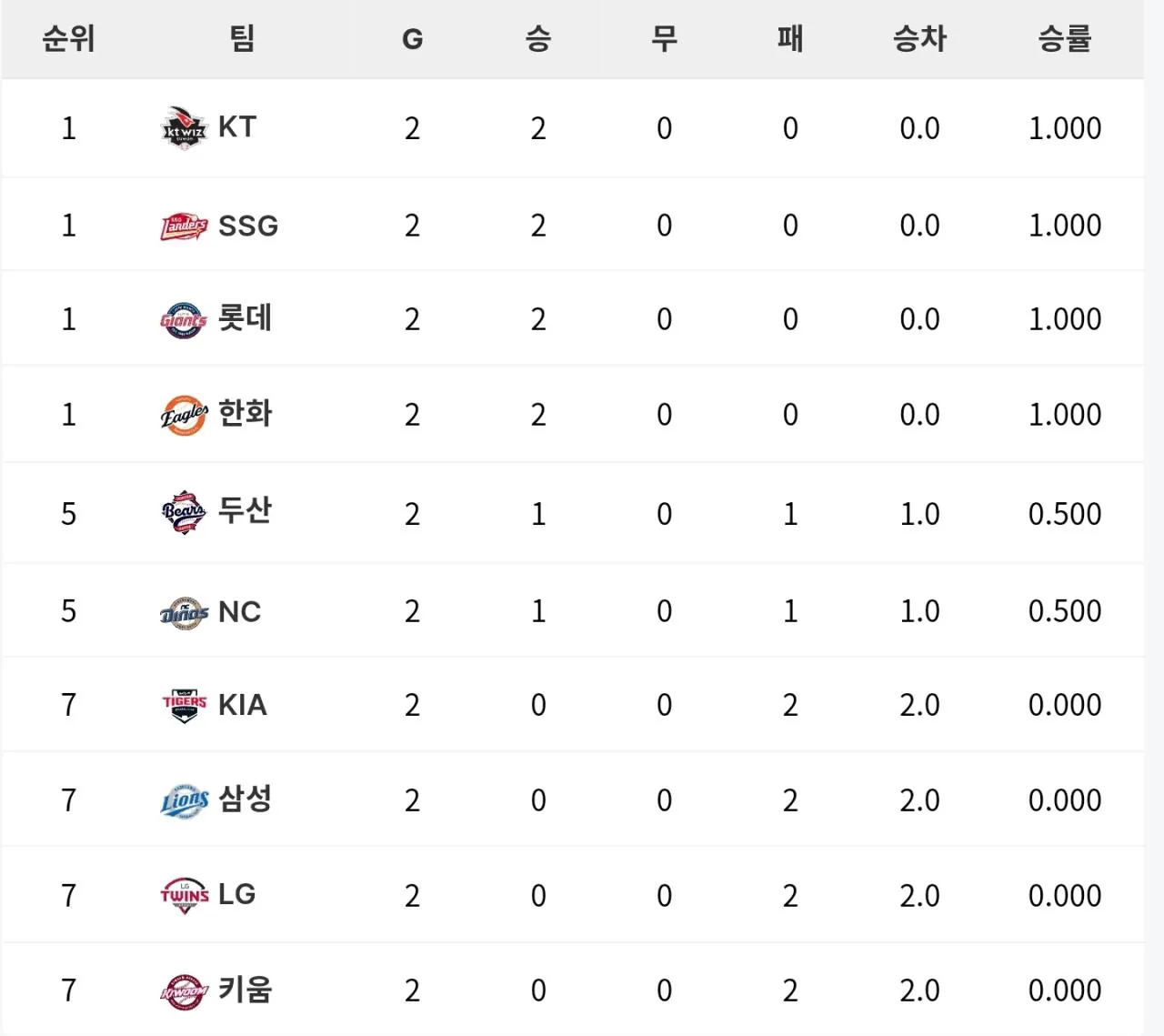 KT, SSG, 롯데, 한화 개막시리즈 2연승