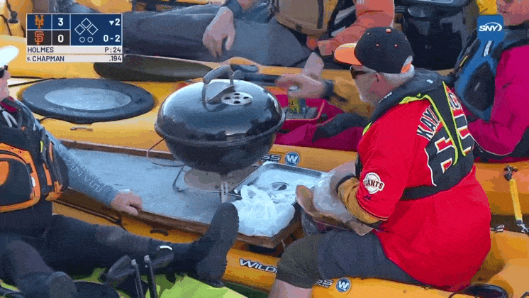 이슈 배 위에서 고기 구워먹는 샌프란시스코 야구팬들.gif