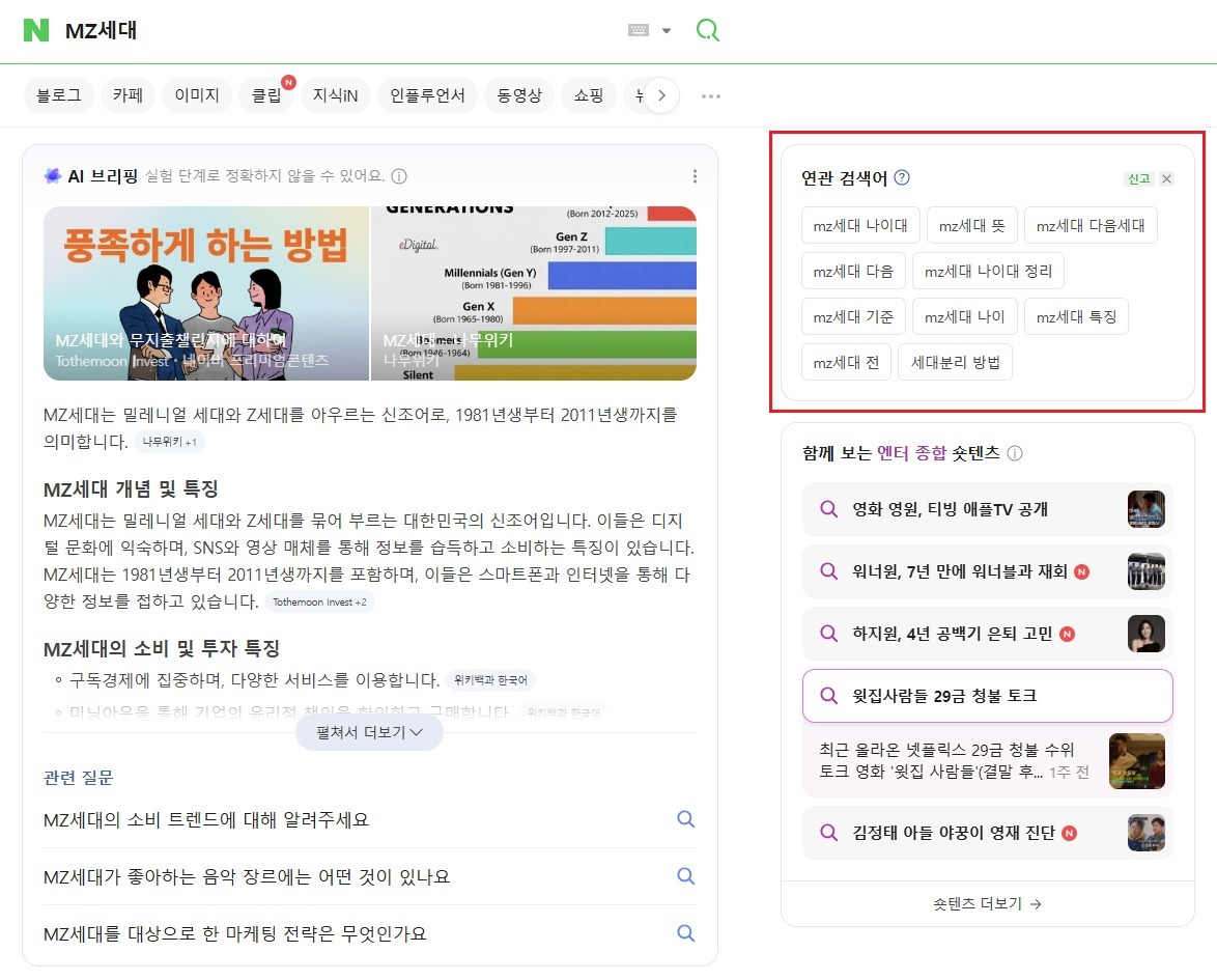 (서울=뉴스1) 신은빈 기자 = 네이버(035420)가 통합검색 결과 상단에서 제공해 온 '연관검색어' 서비스를 약 19년 만에 종료한다. 현재 운영 중인 'AI 브리핑'을 중심으로 인공지능(AI) 기반 검색 기능을 강화하려는 전략으로 풀이된다.