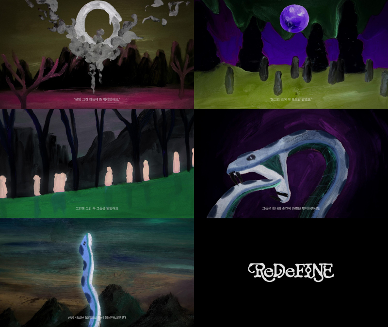 특히 동화적인 초현실 페인팅 질감으로 구현된 영상은 마치 신화 속 한 장면을 옮겨놓은 듯한 몰입감을 선사했다. 여기에 더해진 음악 역시 묵직하면서도 신비로운 분위기를 자아내며 완성도를 끌어올린 가운데, 영상 말미에는 뱀의 입속을 클로즈업한 장면과 함께 앨범명 ‘ReDeFINE’과 발매 일정인 4월 29일 오후 6시가 공개돼 컴백에 대한 기대감을 한층 고조시켰다.