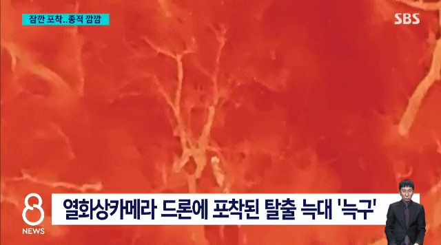 9시 새벽에 열화상드론에 찍힌 늑구는 동물원 근처 뒷산에서 찍힌걸로 보아