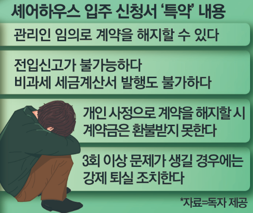 입주 과정에서 작성된 ‘입주 신청서’ 역시 통상적인 임대차 계약서와 다르다는 점도 밝혀졌다. 신청서에는 전입신고가 불가능하고, 관리인이 원할 경우 언제든 퇴거해야 한다는 내용 등이 포함돼 있었다.