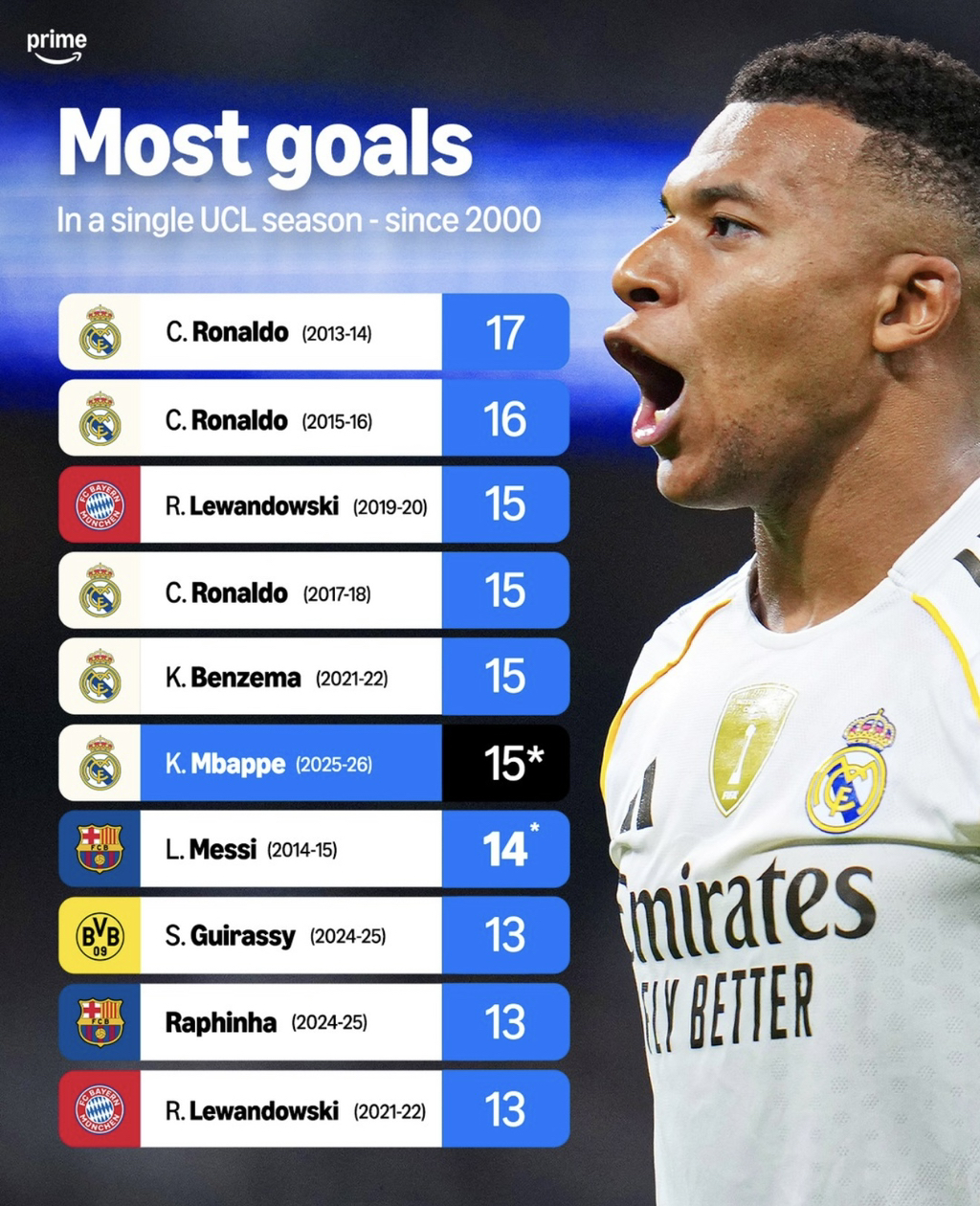 여전히 깨기 어려워 보이는 UCL 단일 시즌 최다골