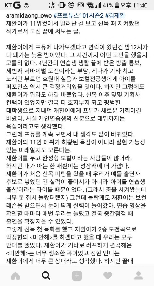 그 당시부터 재환이를 봐온 신의 목소리 작가 중 한명이 오늘 인스타그램에
