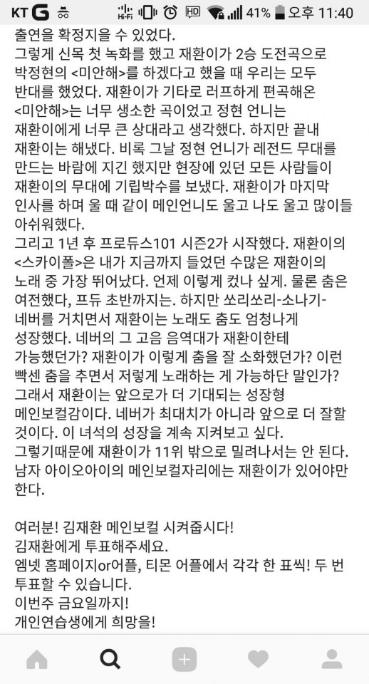 재환이를 응원할 마음이 생긴 덬들은 부디 투표까지도 부탁할게