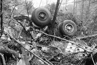 26초 〔衝撃音][2차 충돌음,640Km/h의 속도로 산으로 그대로 충돌해 기체 대파]