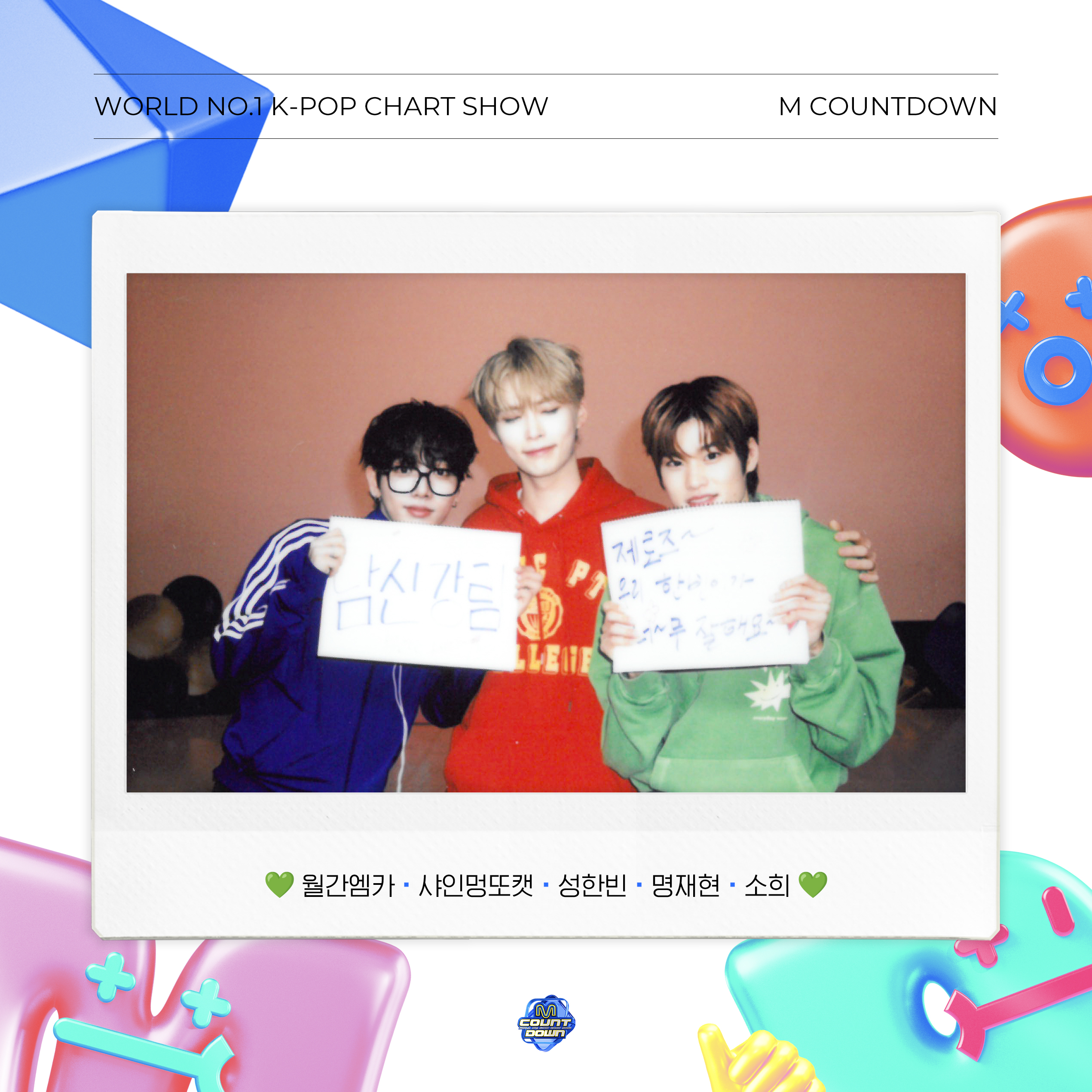 [@MnetMcountdown] 국민햄씨 1주년에💙 우리 명명이 부모님관람불'갓' 컴백에🩷 또리 데뷔 1주년에🧡 오늘도 완벽한 멍또캣 비주얼에✨ 귀여움 폭발하는 멍또캣 케미까지 엠카에 축복이 끝이 없다...