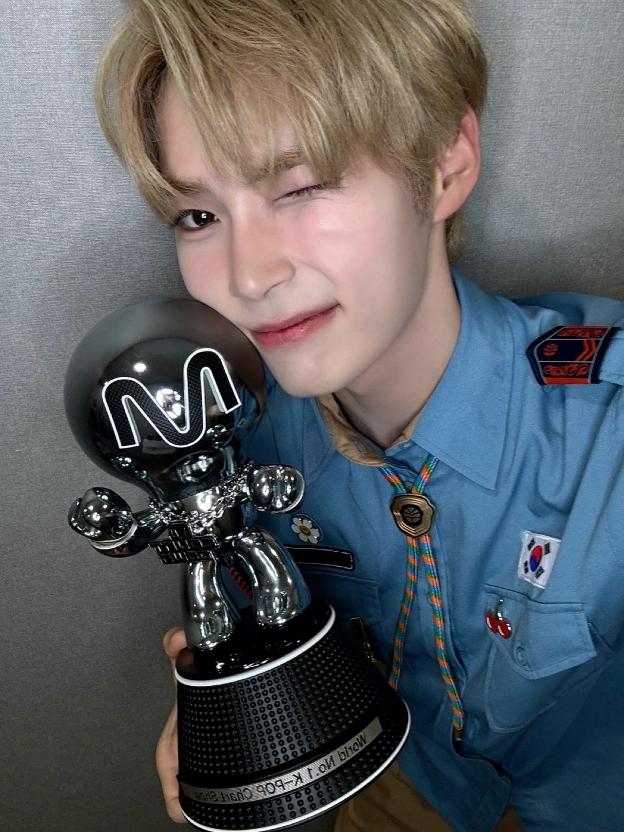 [@MnetMcountdown] 이번 주 MC 의상 컨셉은! 🩵🤎🎖️ MC석에 방청 오시는 팬분들도! 안방 1열의 팬분들도! 🩵🤎🎖️으로 드레스코드를 완성해 주세요!