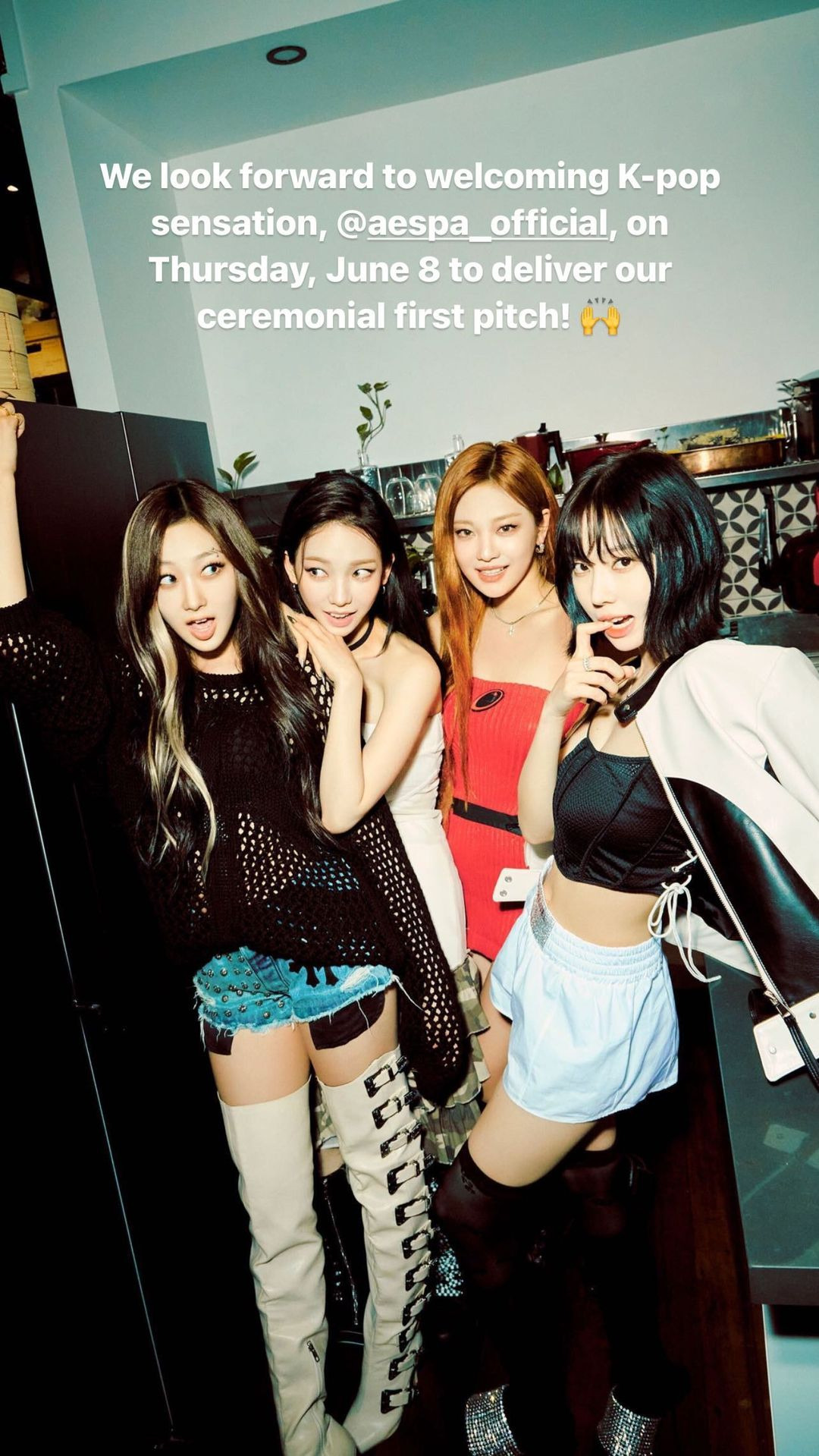 @yankees 스토리 | We look forward to welcoming K-pop sensation, @aespa_official, on Thursday, June 8 to deliver our celemonial first pitch! 🙌 |