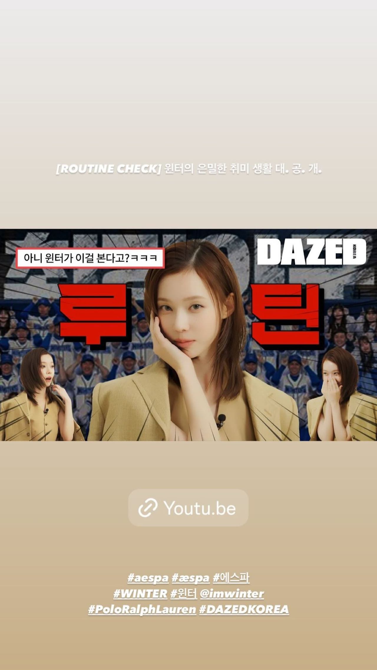 14:00 유튜브 [DAZED KOREA] [ROUTINE CHECK] 윈터의 은밀한 취미 생활 대. 공. 개.