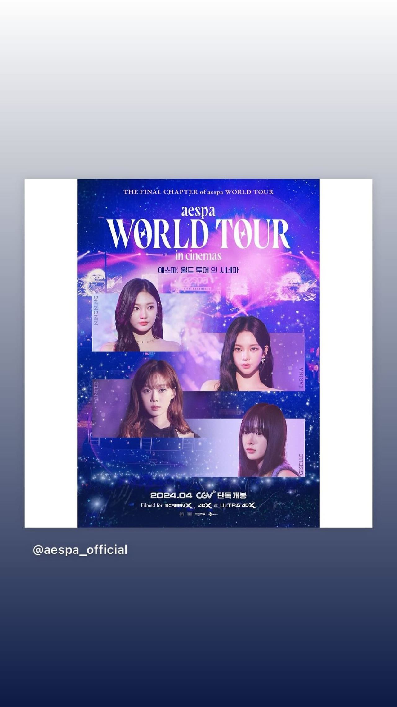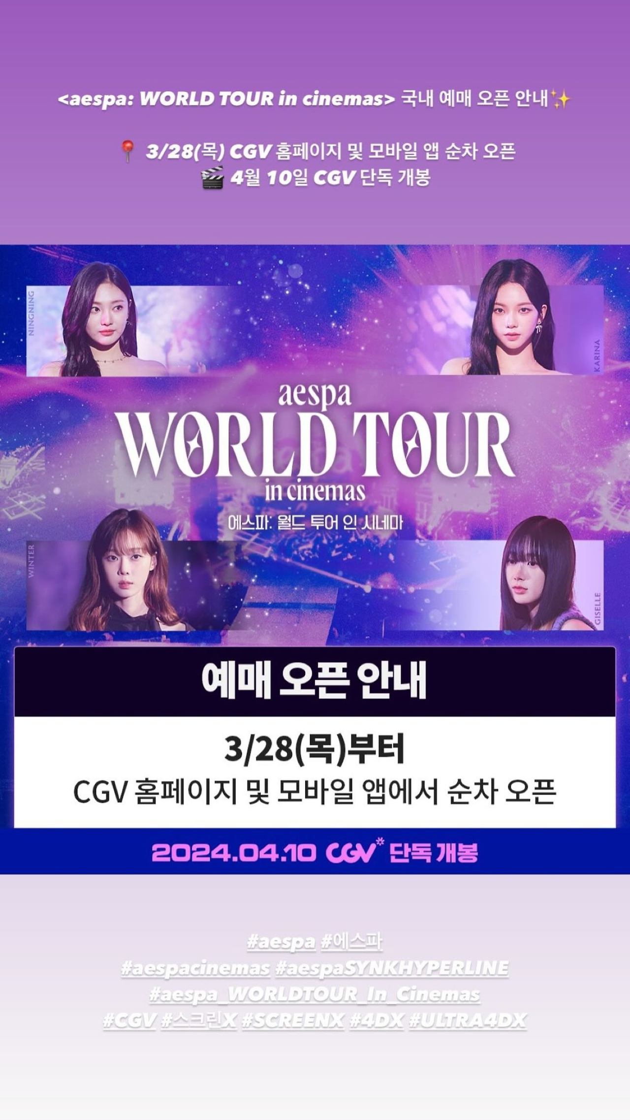 14:30 X [@aespa_official] ‘aespa: WORLD TOUR in cinemas’ 국내 예매 오픈 안내✨