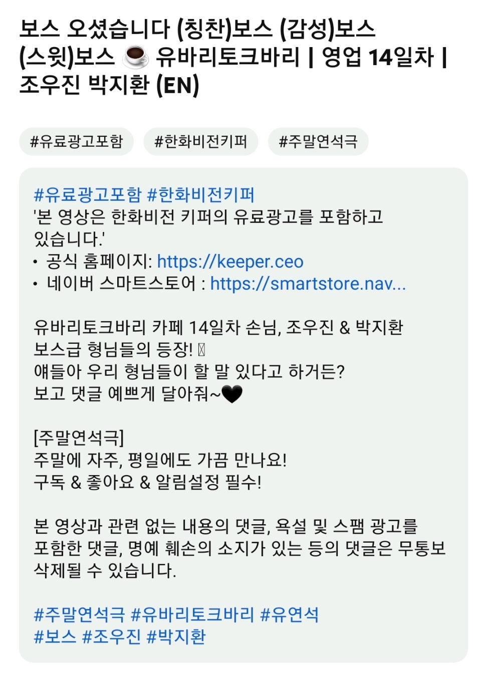 📌   유연석의 '주말연석극' @yoo_yeonseok  매주 토요일 20:00